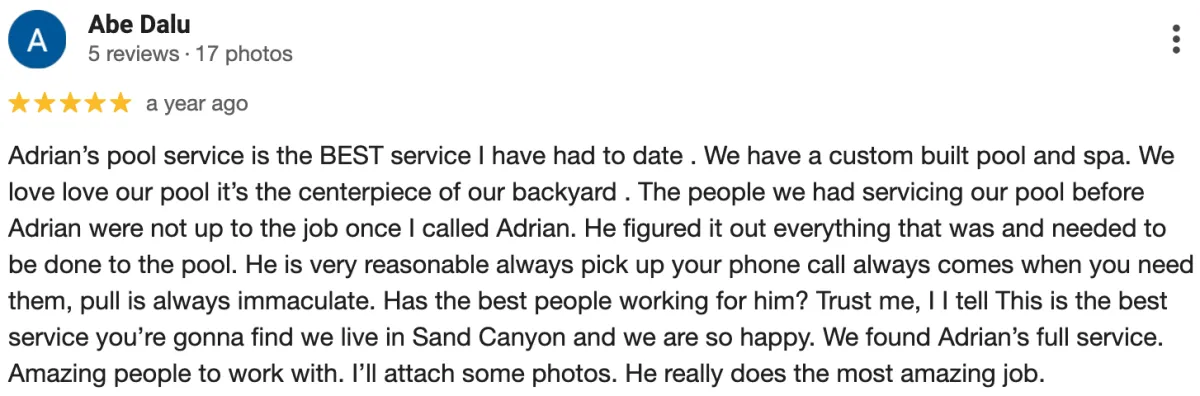 Adrian's Pro Pool Service has been a trusted leader in swimming pool remodeling and build services in California for 20 years.